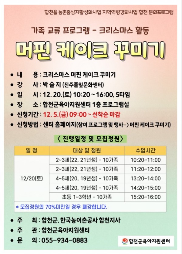 | 교육대상 | 관내 2~3세(22~21년생) | 교육정원 | 10명 | ||