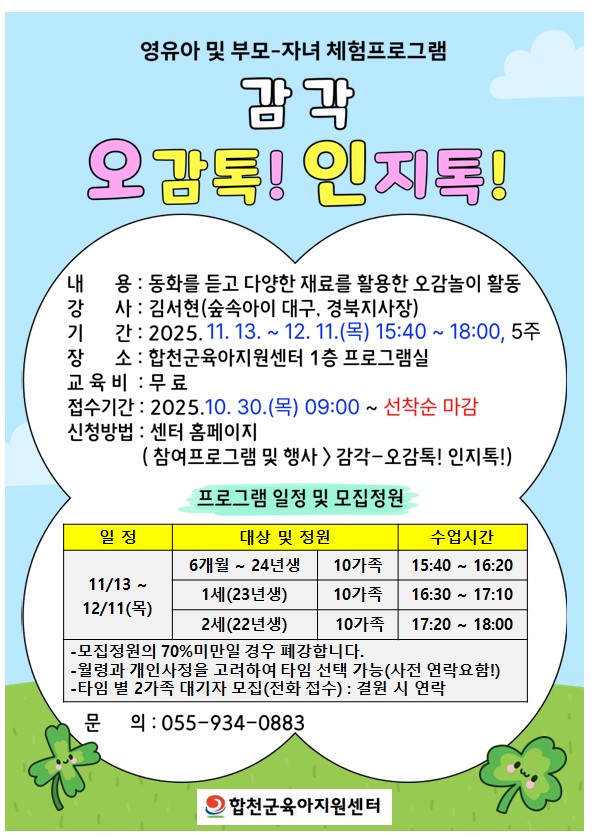 | 장소 | 합천군육아지원센터 1층 프로그램실 | ||||