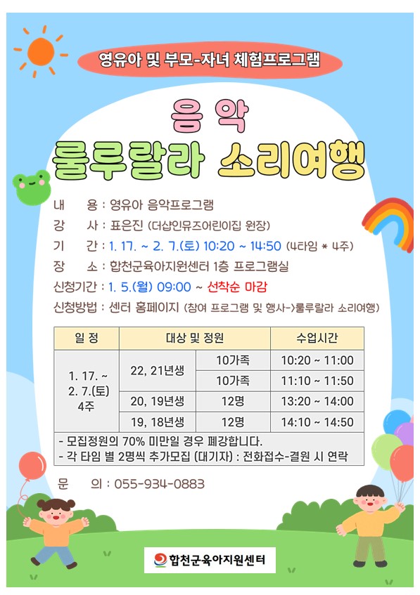 작성자 : 합천군육아지원센터 | 작성일25-12-31 13:47 | 조회107회음악-룰루랄라 소리여행 21~22년생
