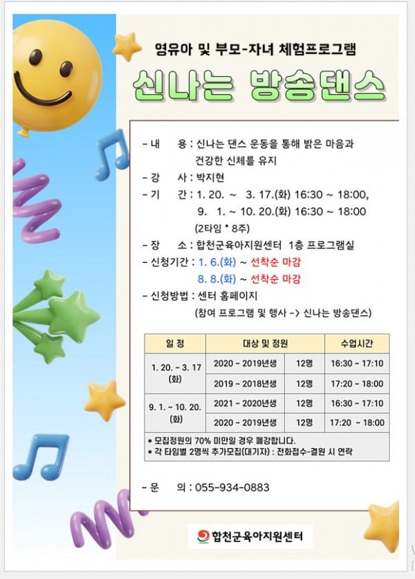 작성자 : 합천군육아지원센터 | 작성일25-12-31 14:08 | 조회108회신나는 방송댄스 19~18년생
