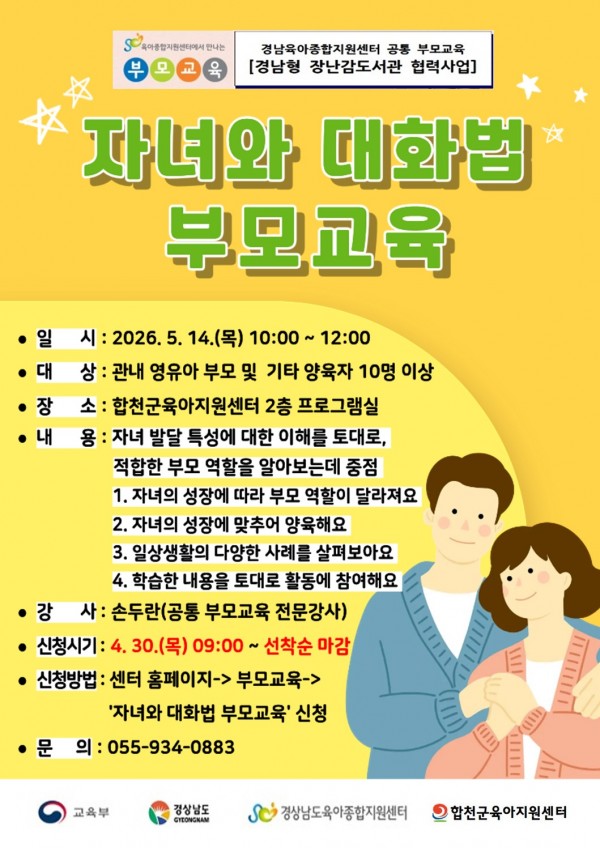작성자 : 합천군육아지원센터 | 작성일26-04-15 09:42 | 조회56회부모교육 - 자녀와 대화법